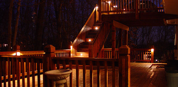 When accentuating your outside living space, you want to create a warm, comforting atmosphere. Lighting should guide your guests to a destination and keep them away from hazards. A well executed plan will highlight the architecture of nearby structures and add depth to the environment by lighting far away objects or plant material. Overall, the illumination should not be too bright which could attract bugs and other unwanted distractions. The ultimate goal of a lighting system on your deck or patio is to relax in an ambiance that is simply rewarding and genuine.